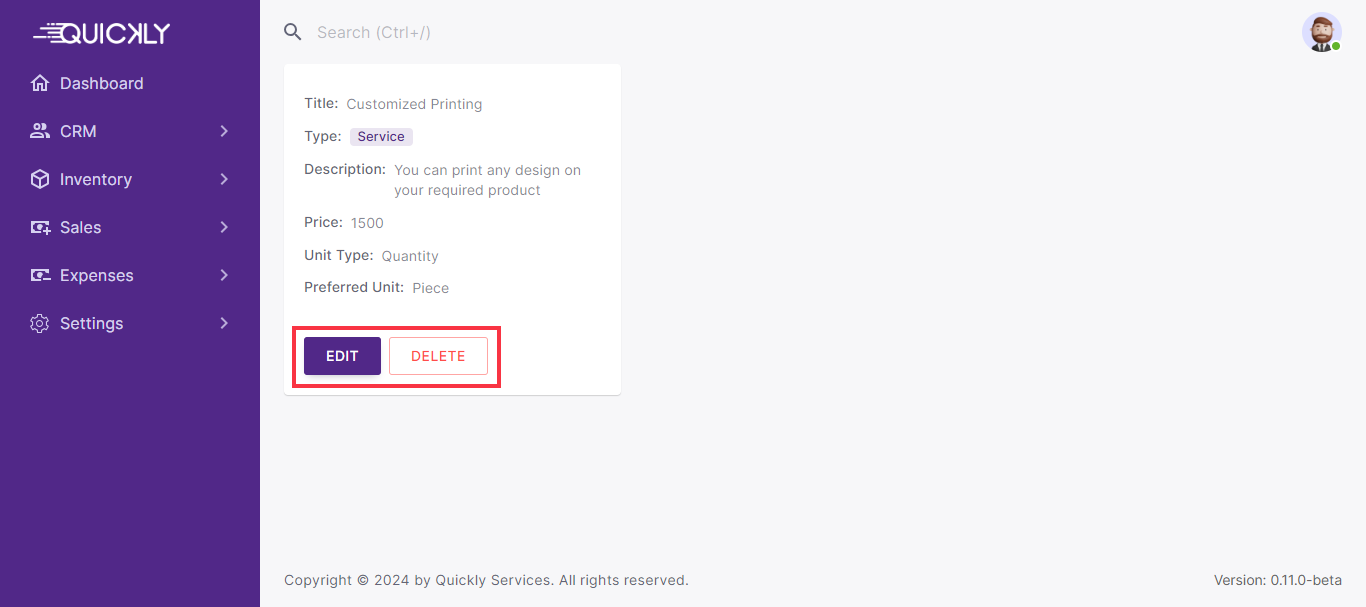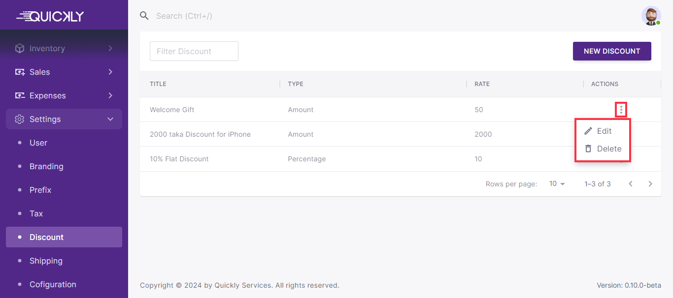 You can Preview, Edit or Delete an item from the 3 dot menu located in the Actions field.