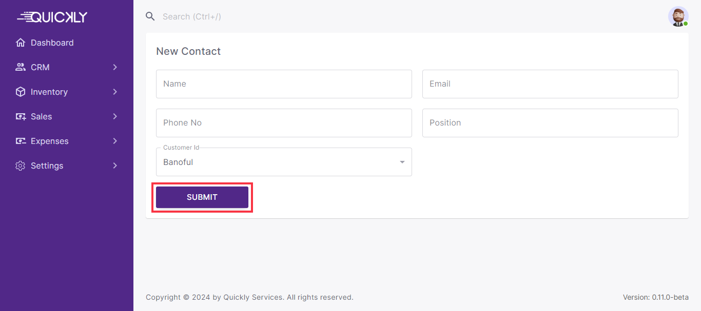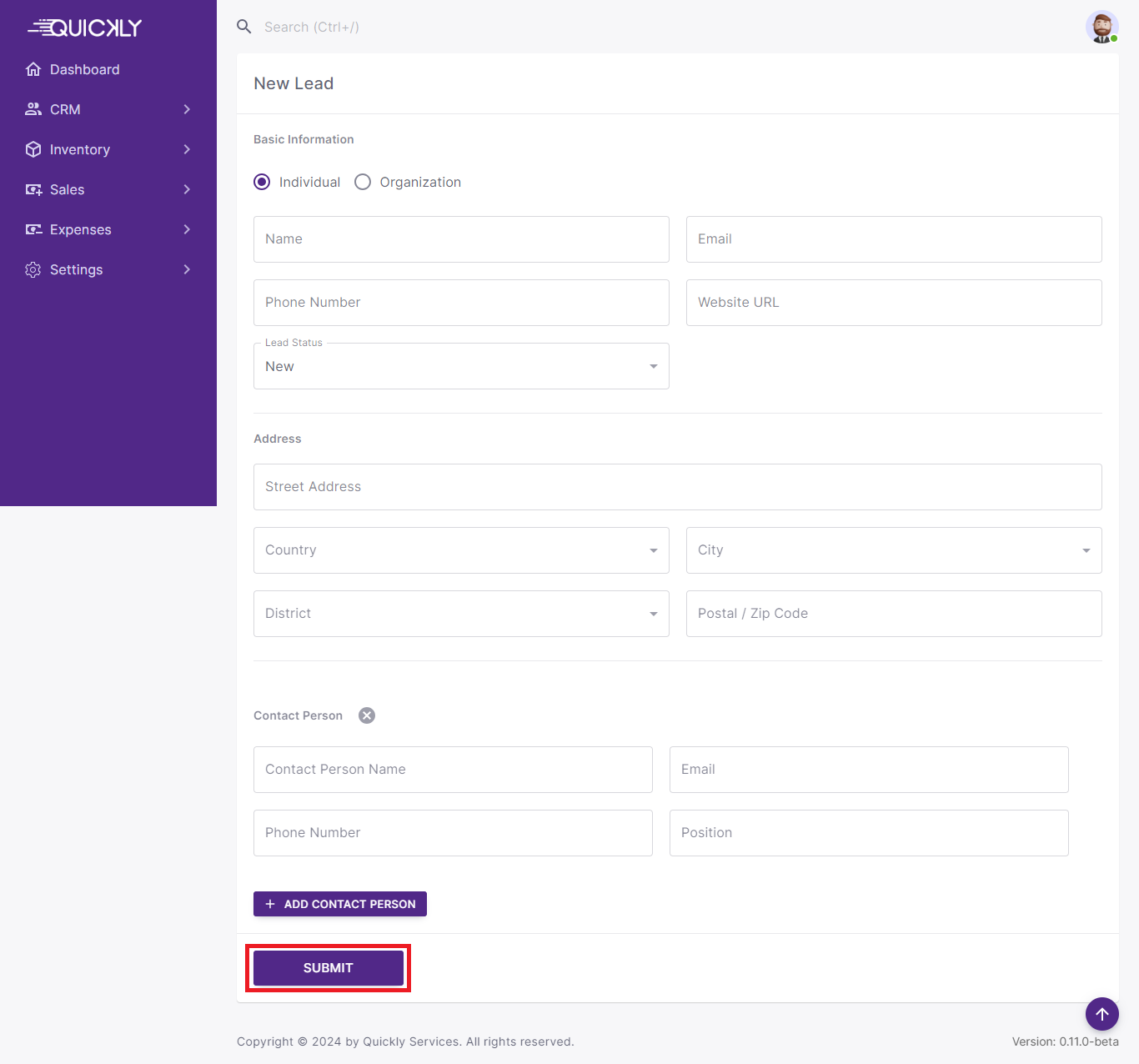 To create a new quotation, go to Quotation under Sales section from the navigation menu and click on Create Quotation.