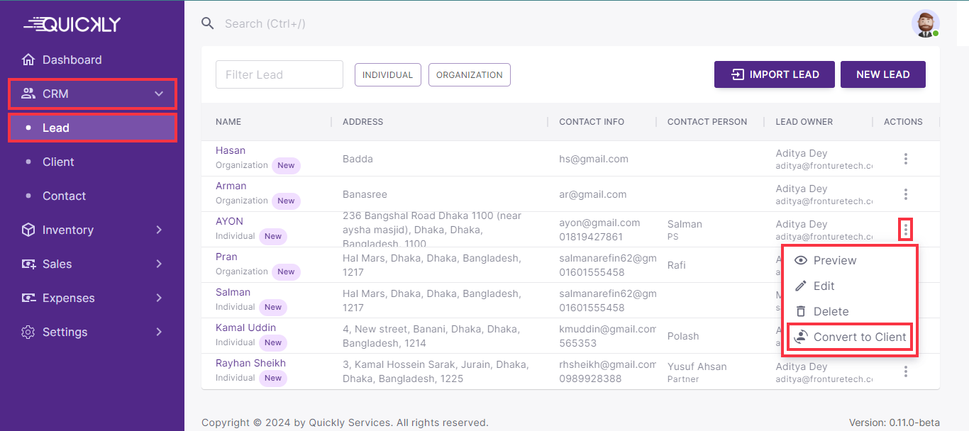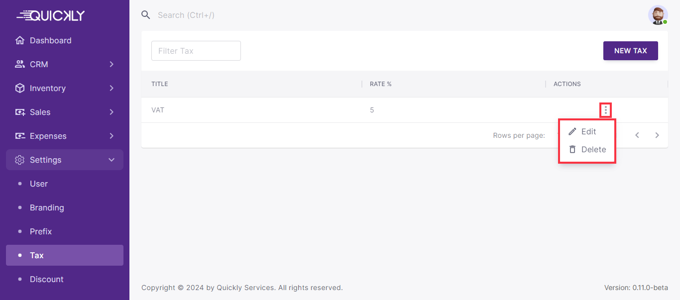 You can Preview, Create Invoice, Duplicate, Edit or Delete a quotation from the 3 dot menu located in the Actions field.
