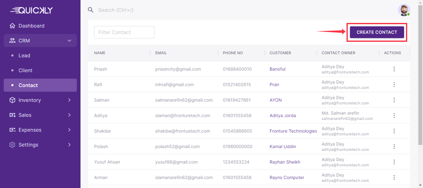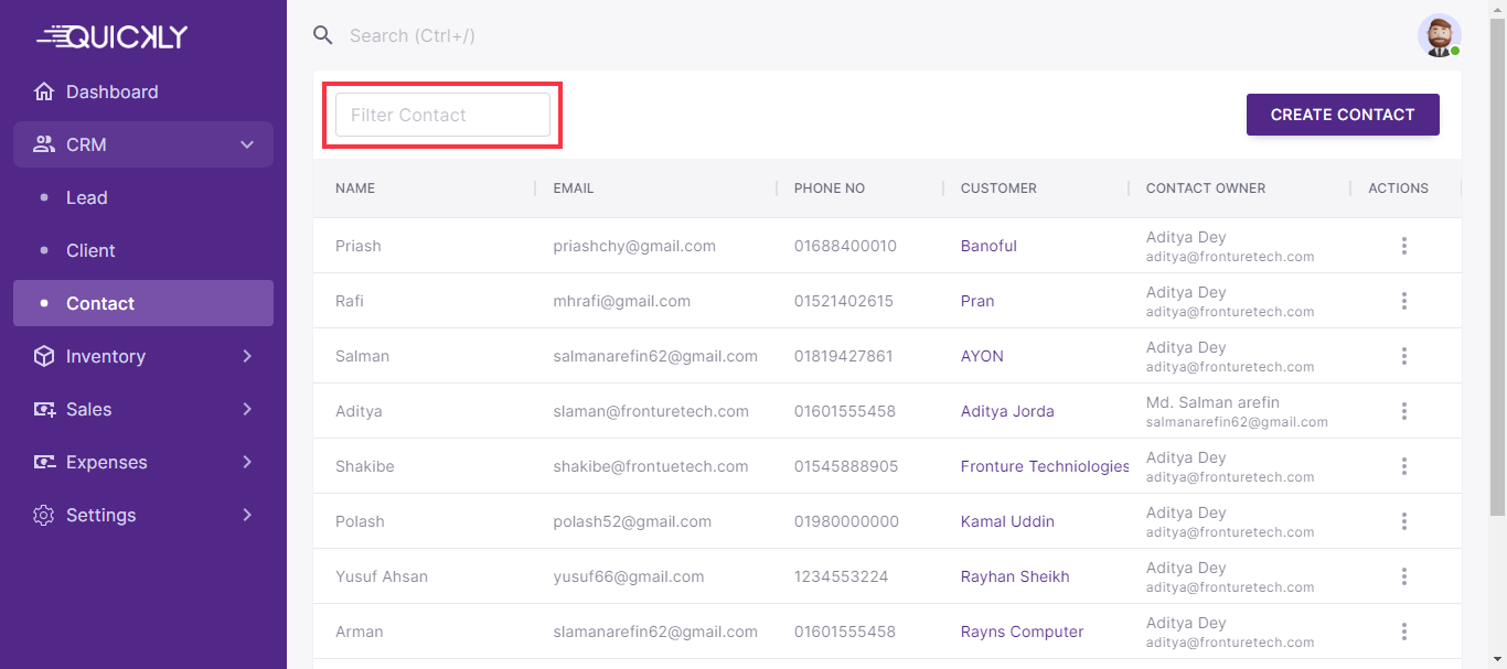 You can see the Invoice Number, Invoice Status, Customer info, Invoice Issue Date, Due Date, Payment Status, Amount to be paid, Due amount, and Invoice owner from the Invoice page. -