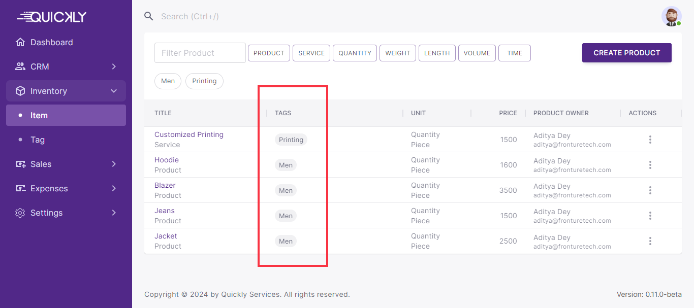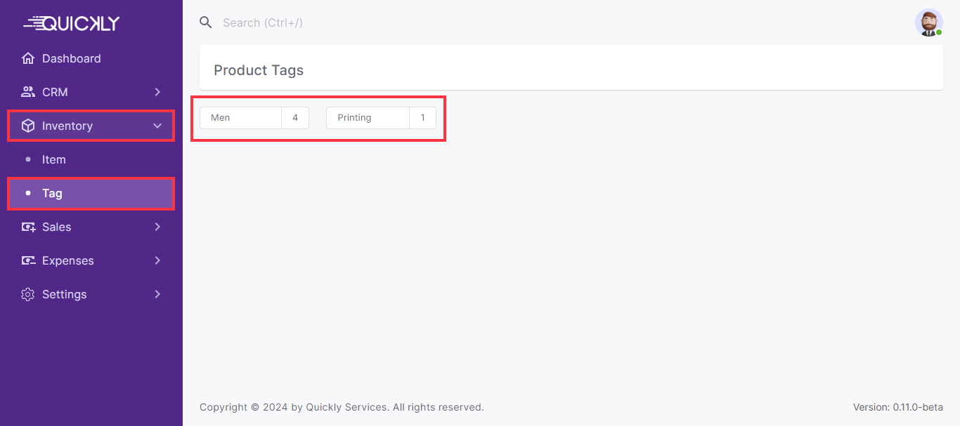 To view all the created product tags, go to Tag under Inventory section from the navigation menu.