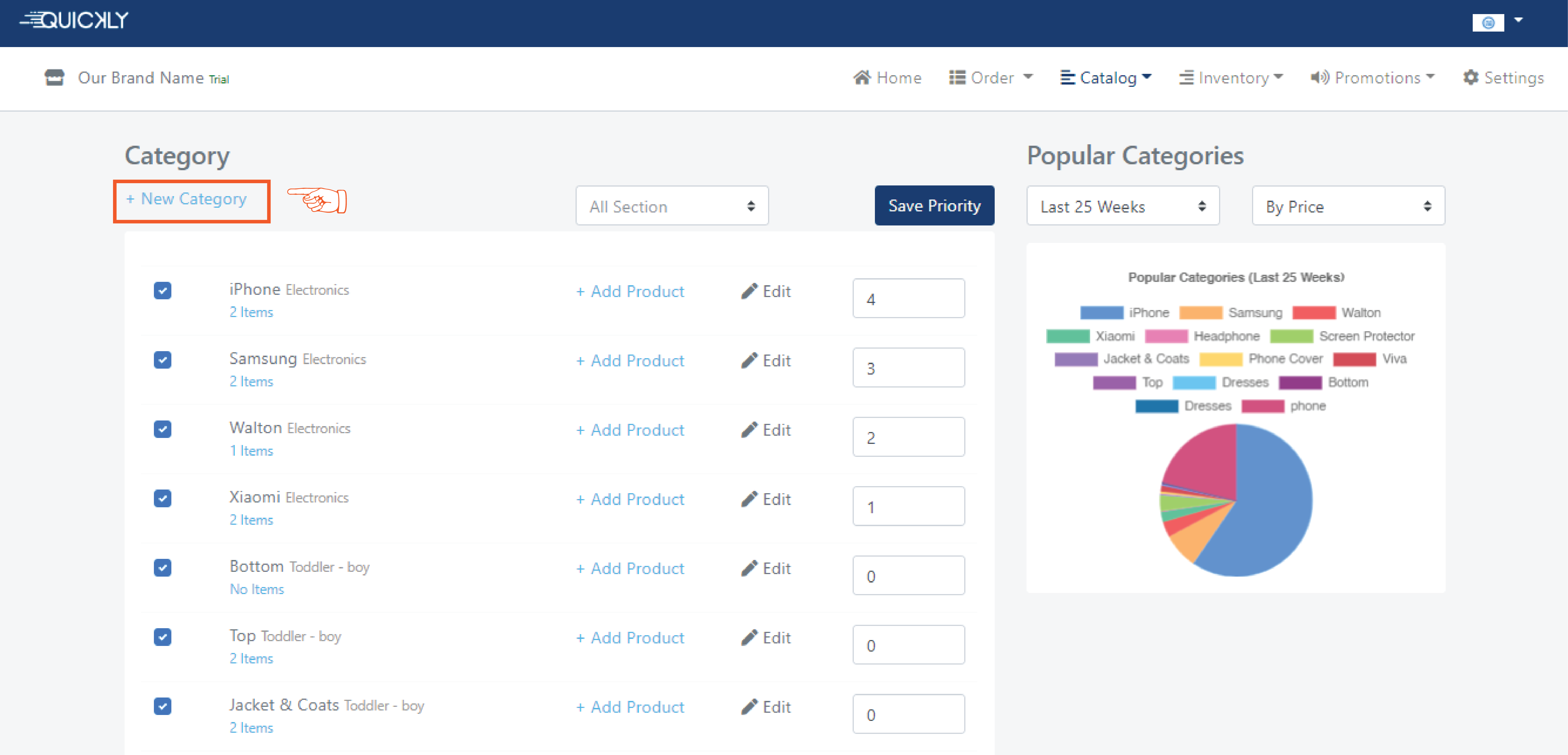 👉 To create a category, simply navigate to the Catalog option of the portal and click on the Categories.