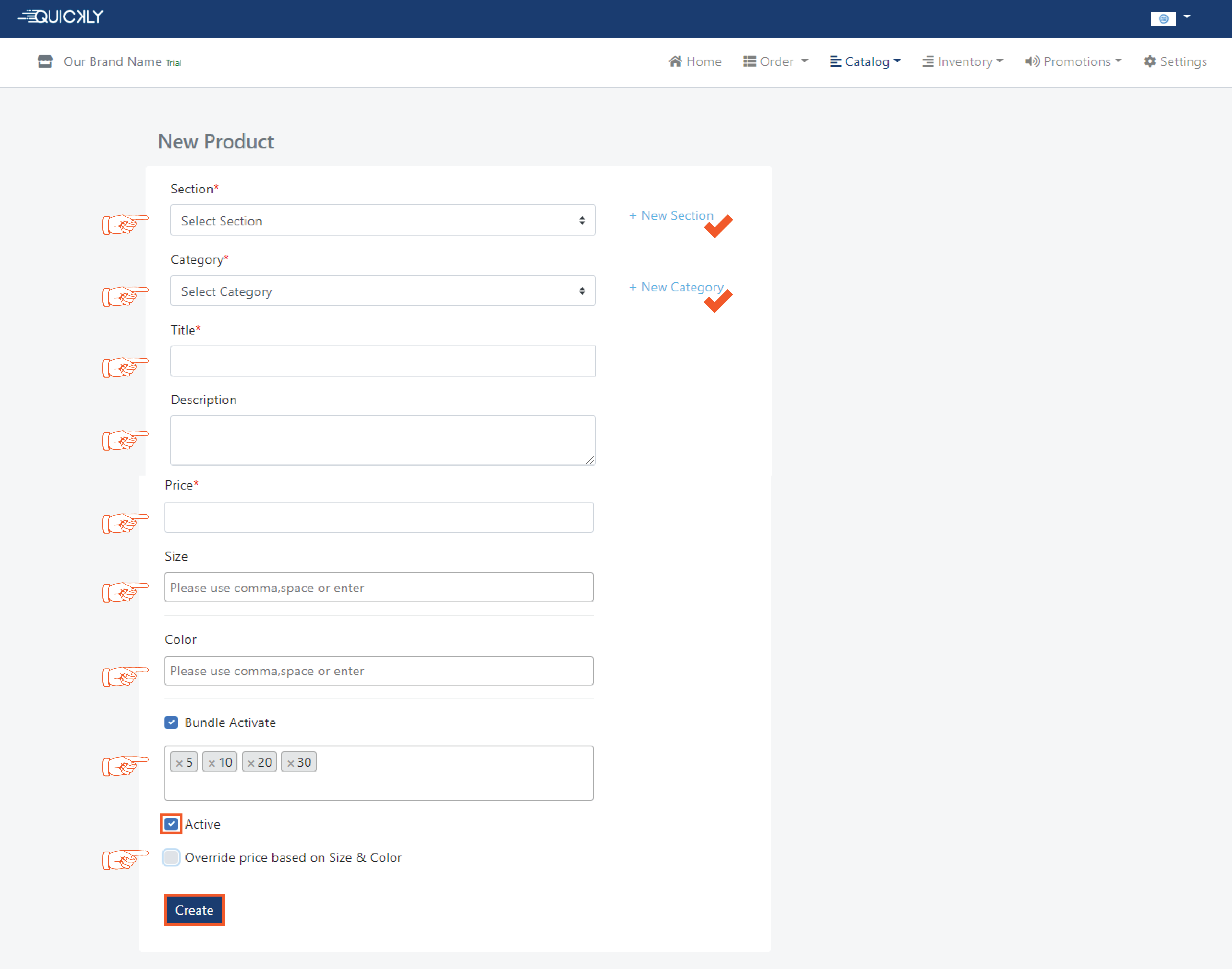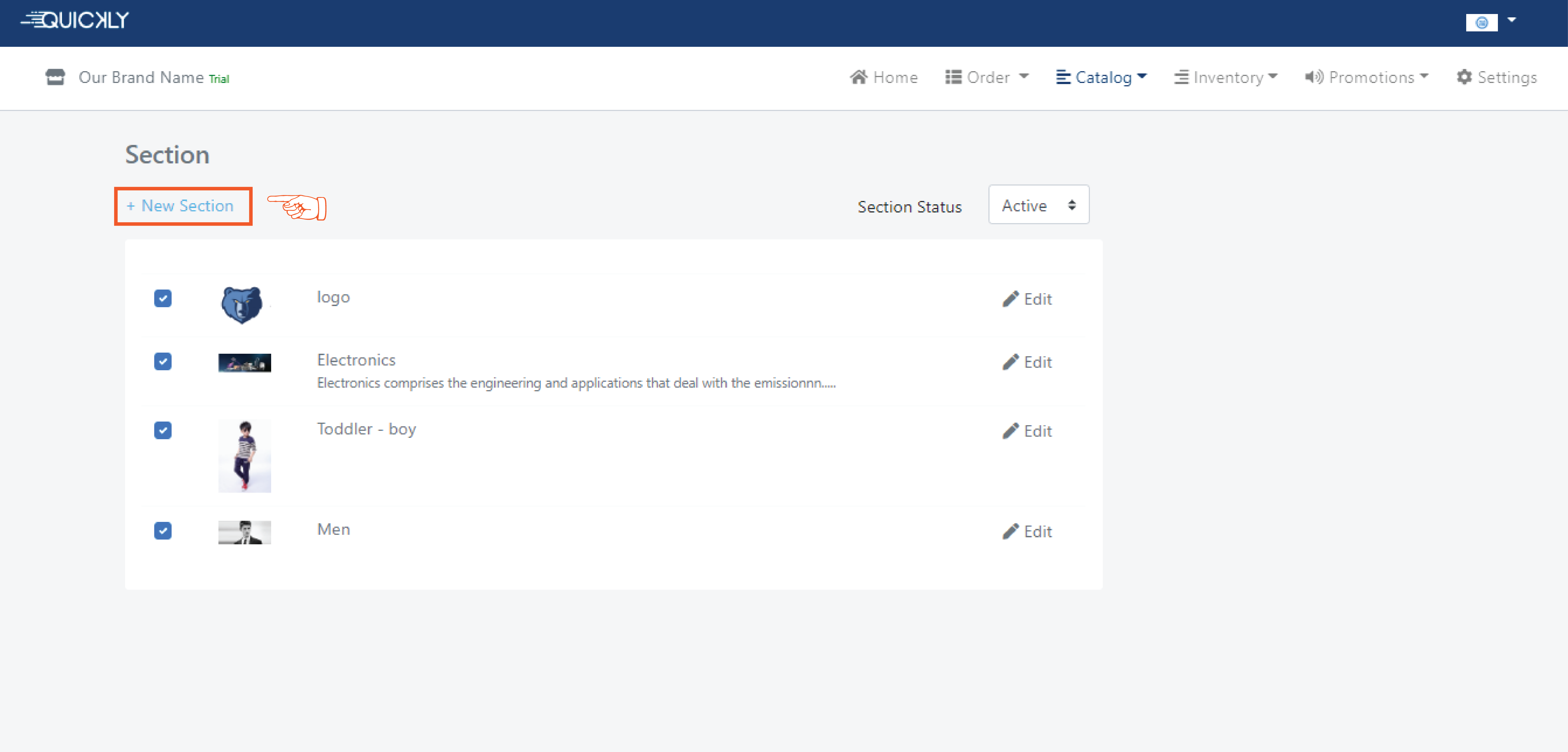 👉 To create sections, simply navigate to the Catalog option of the portal