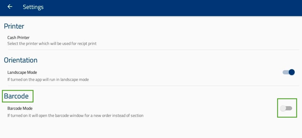 If you turn on the barcode mode, it will open the barcode window for a new order instead of section.