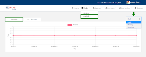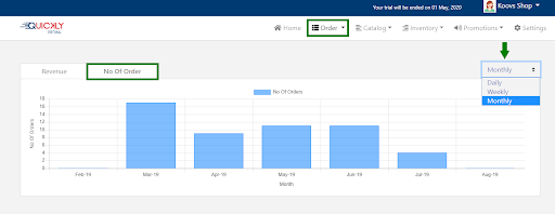 👉 No. Of Order Graph shows sales of daily,weekly and monthly. On the horizontal side we take the weeks and on the vertical side we take the no of orders. You can find out ‘no of orders’ you are getting every day, week and month in graphical interface from these charts.