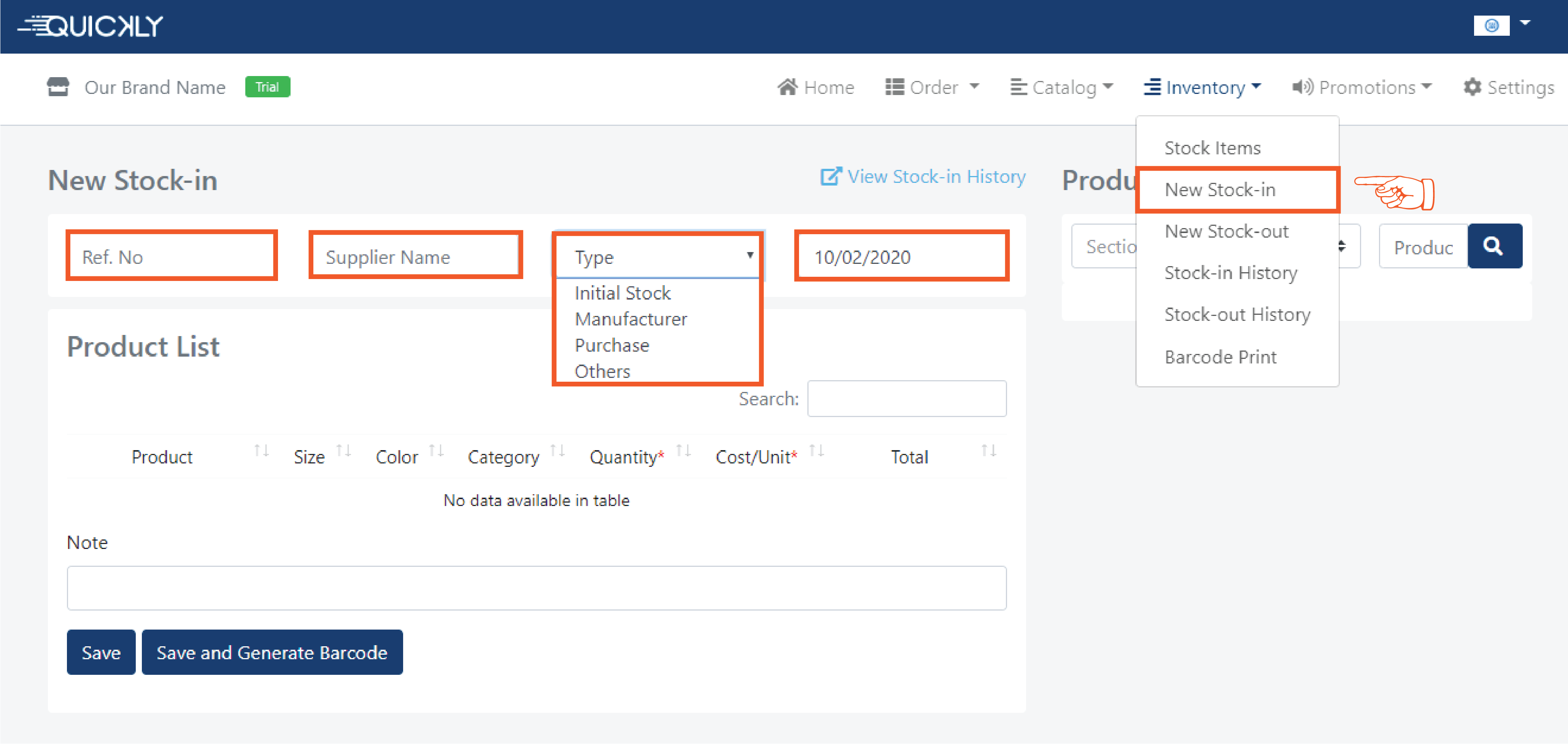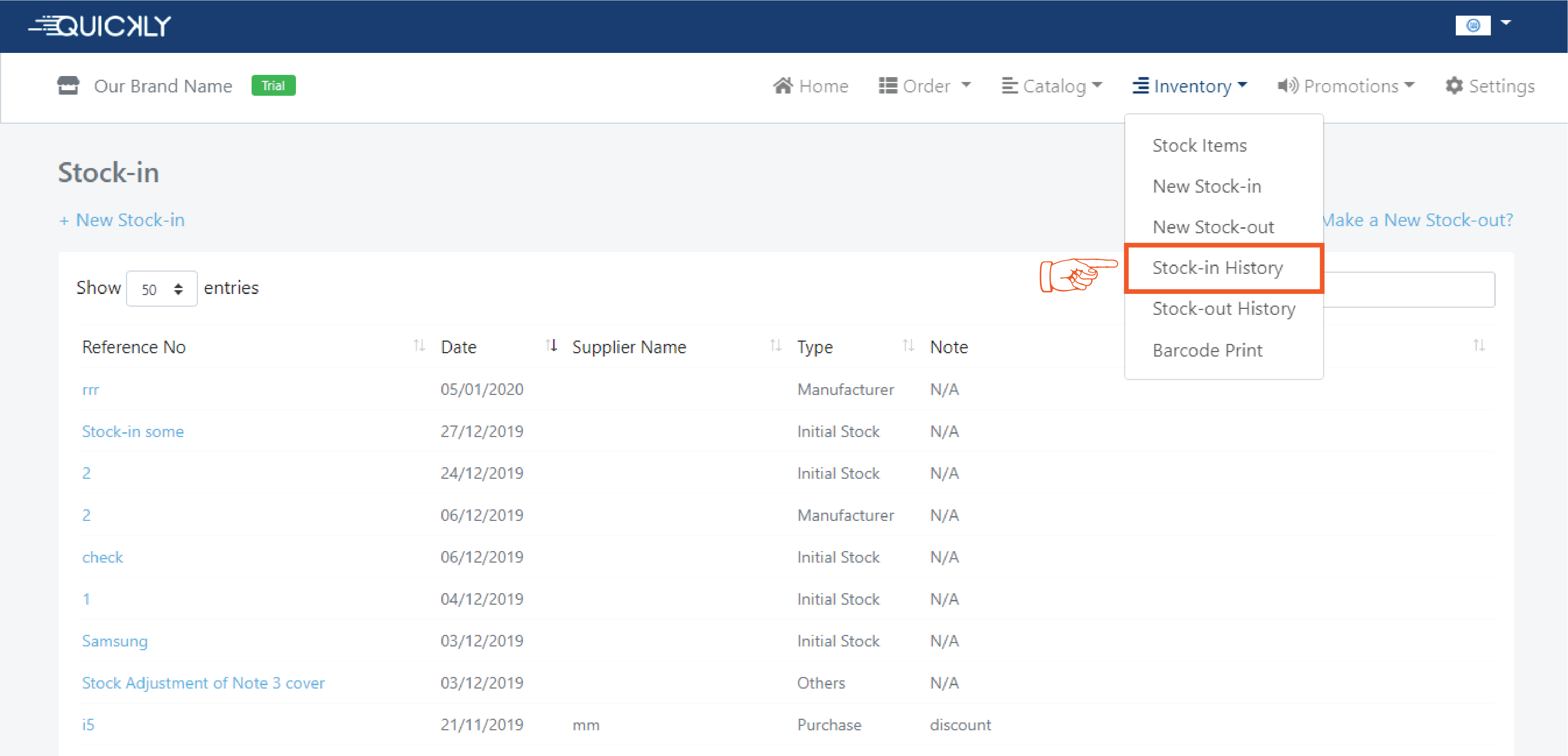 the stock-in history page. Then write down the Supplier Name if you want to.