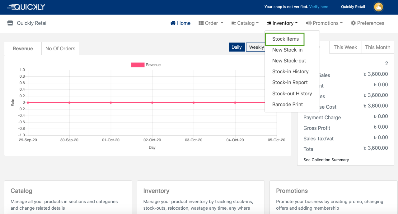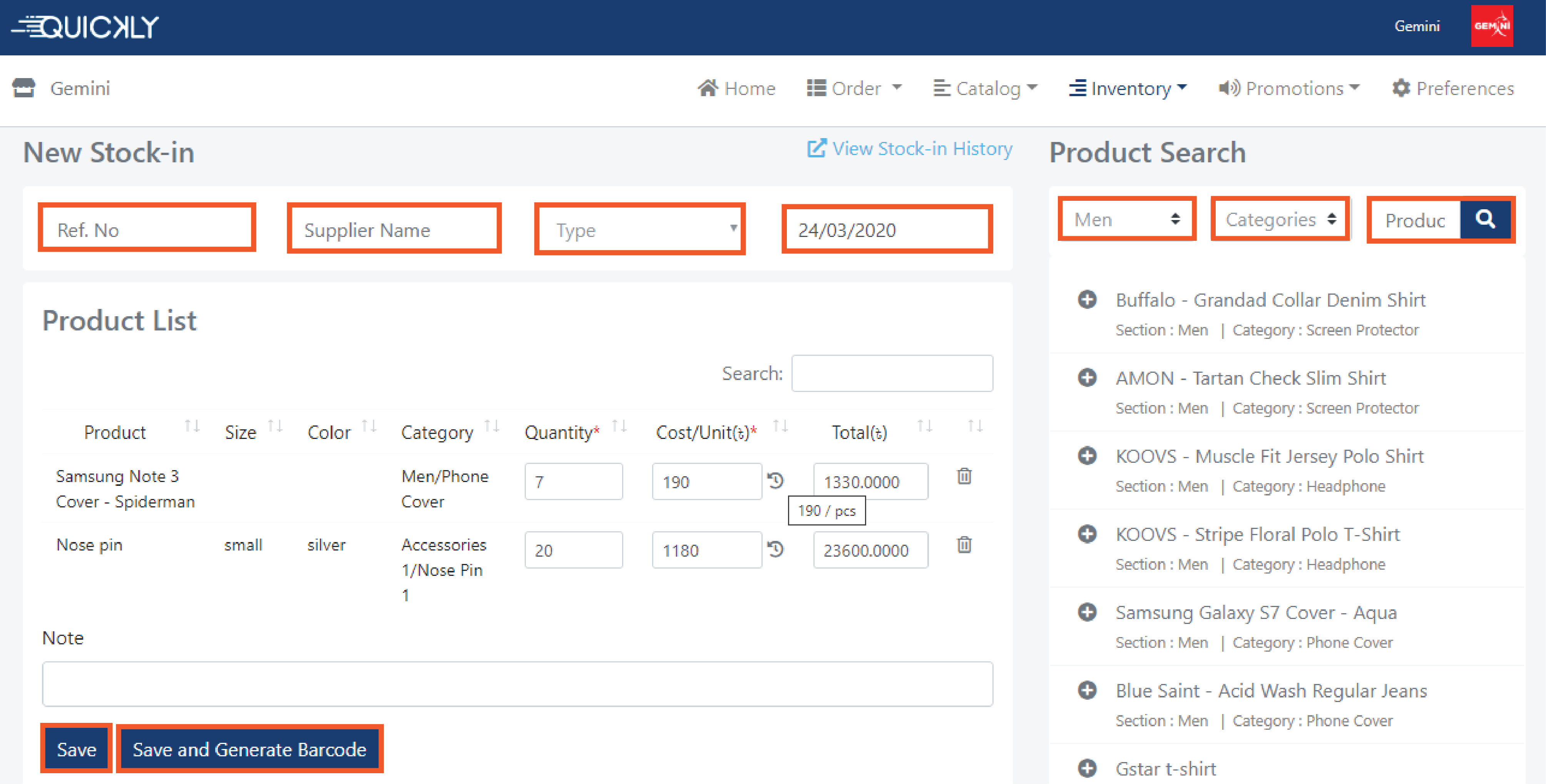 👉 On this page, you can see the details of all the items you have stocked-in for your shop. Simply navigate to the Inventory option of the portal and click on the Stock-in History to see your stock list. By clicking on the reference no. you will get to see the details.