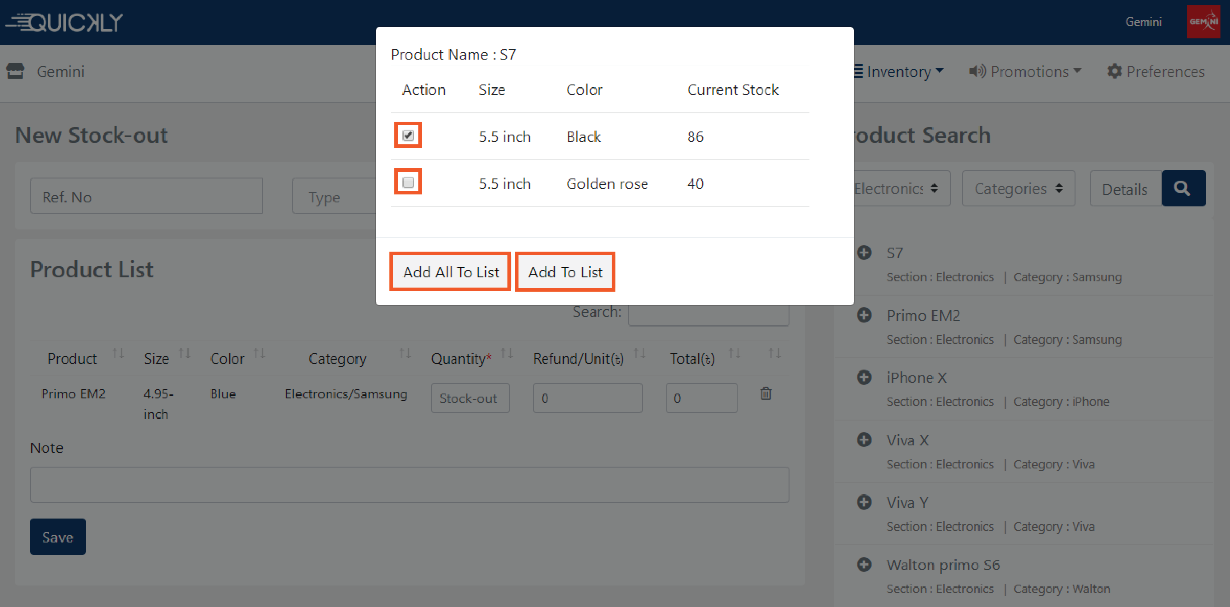 👉 On this page, you can see the details of all the items you have stocked-out for your shop. Simply navigate to the Inventory option of the portal and click on the Stock-out History to see your stock out list. By clicking on the reference no. you will get to see the details.